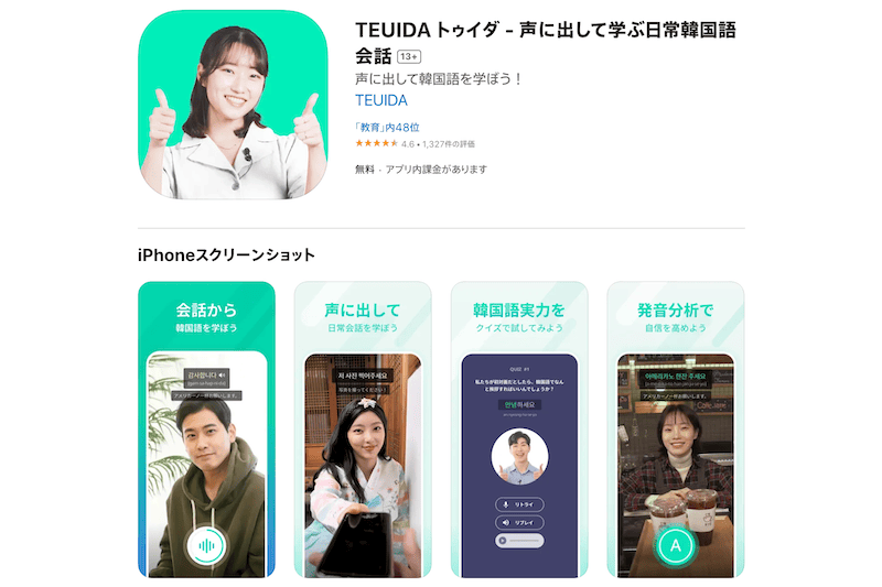 TEUIDAは、日常のシチュエーション動画で話す練習ができるアプリです。学習順序がまったく決まっていないため、実践を通して自由に学びたい方にぴったりです。