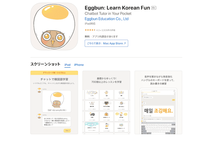 Eggbunは、ハングルの書き方から発音、単語、文法まで幅広く学べるアプリです。韓国語のキーボードを使ってチャット形式で学ぶ機能が特徴的です。ネイティブスピーカーによる音声が付いており、正しい発音も身につけられます。