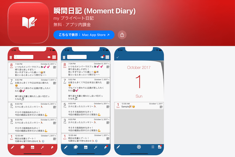 | 瞬間日記 | シンプル | 有料 | 〇 | 〇 |