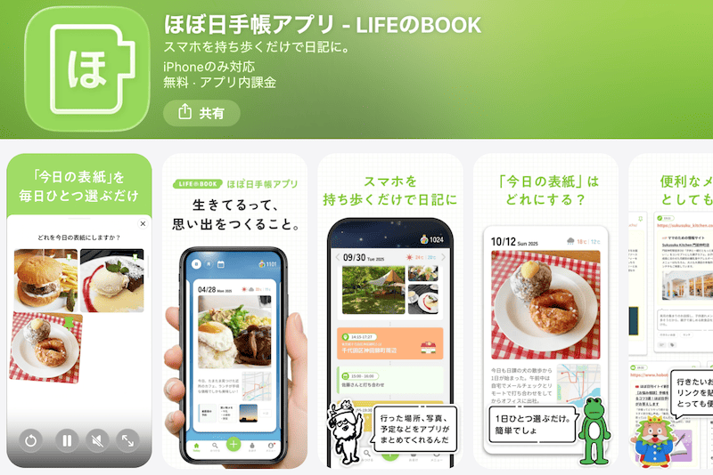 人気の手帳「ほぼ日」の公式アプリです。写真や出かけた場所などを自動で収集してくれ、「今日の表紙」を選ぶだけでページが完成します。もちろん自分で文章を書き込むことも可能です。毎日の記録を手伝ってくれるキャラクター「センパイ」たちのコメントも楽しいです。