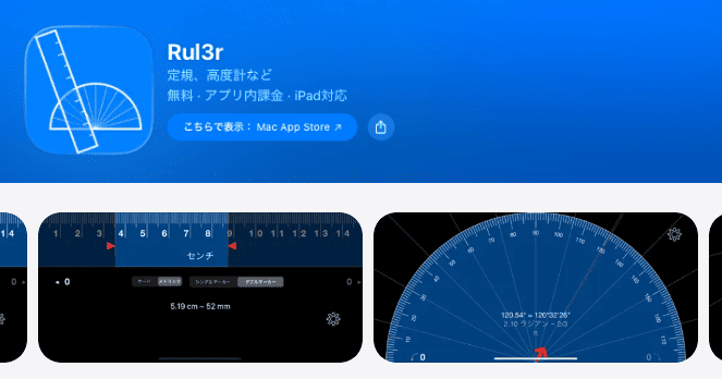 Rul3rは、iPhoneのセンサー機能を詰め込んだマルチ計測アプリです。角度を測る分度器機能や、重力の方向を基準に垂直を確認する「下げ振り」、平面の傾きを測る「水準器」などが一つにまとまっています。