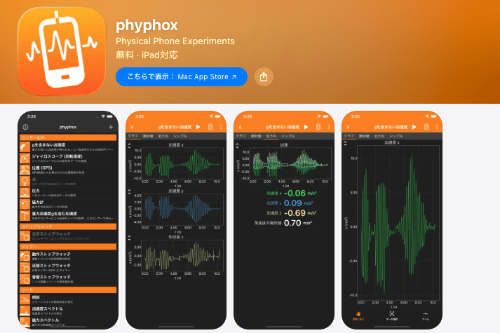 Phyphoxは、ドイツのアーヘン工科大学の研究室が開発した、スマートフォンで本格的な実験ができる計測アプリです。データ分析ツールを搭載しており、スマートフォンのさまざまなセンサーから取得したデータを分析できます。