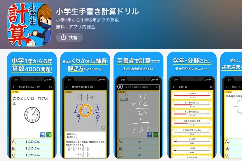 - 学年の目安:小学1年生~6年生(学年ごとに別アプリ)