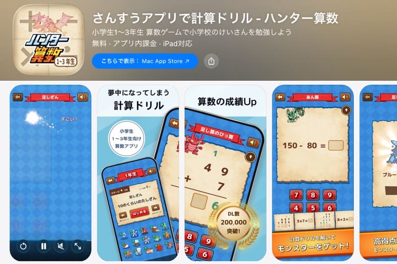 - 内容・特徴:計算ドリル形式。高得点でモンスターを集めるゲーム要素あり