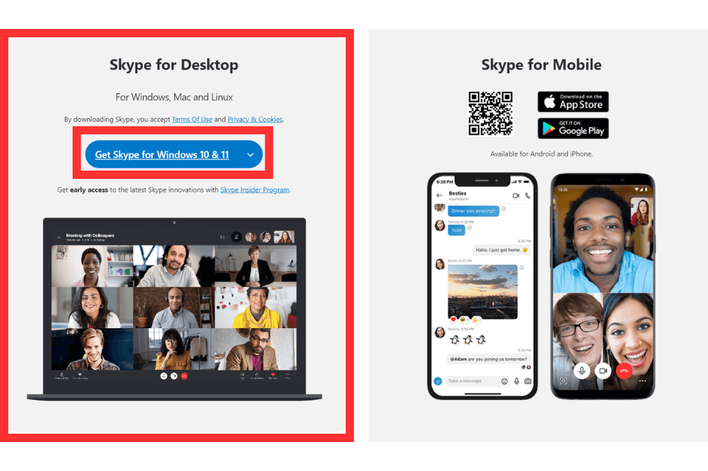 まずは、以下の公式サイトからSkypeをダウンロードしてください。