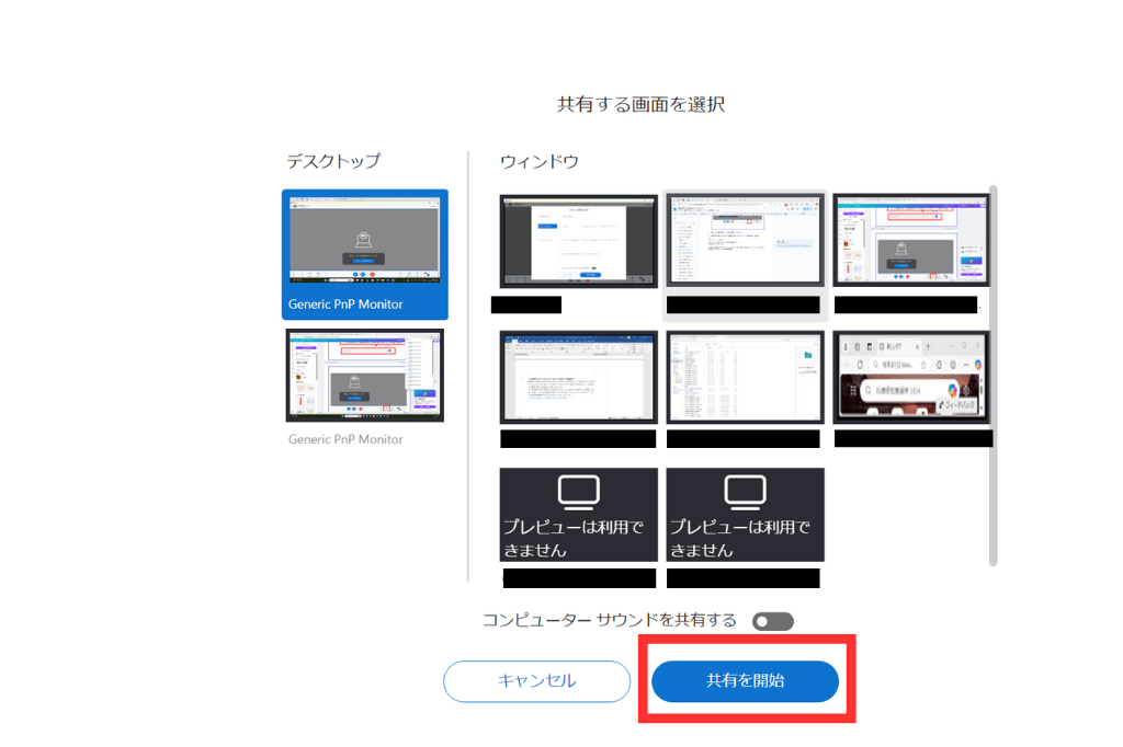 ③画面共有を停止するときは、画面下の「共有を停止」をクリック