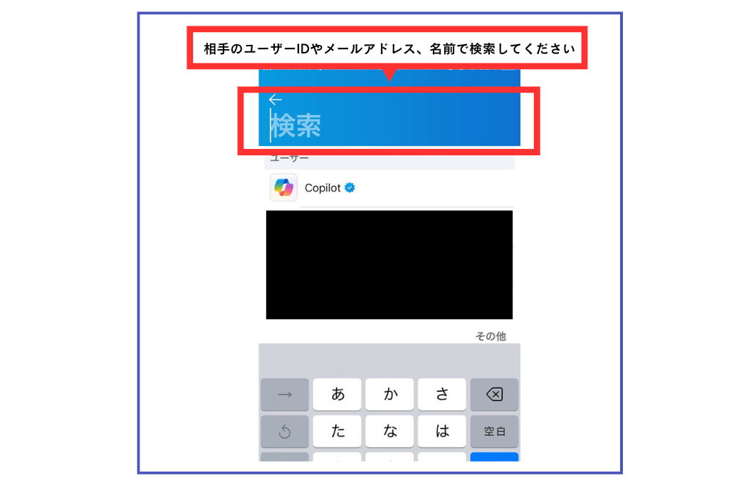 ②ユーザーのIDやメールアドレスを入力し、追加したいアカウントを探す