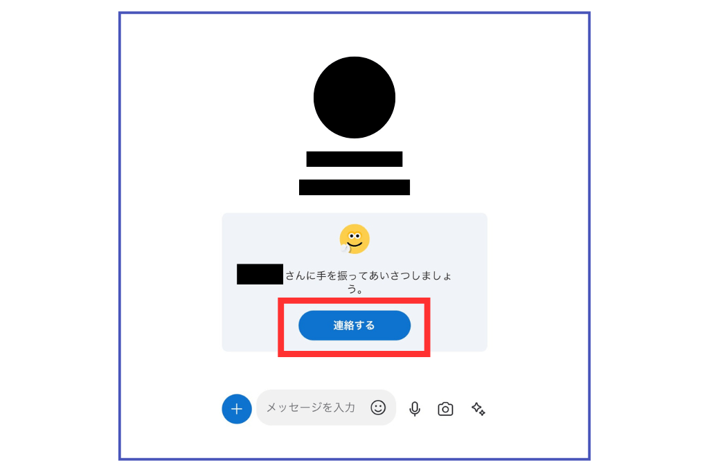 ④「連絡する」をクリックし、相手に文字やスタンプを送る