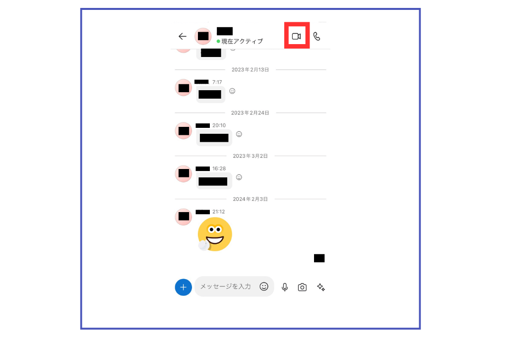 ②画面右上のビデオ通話(ビデオボタン)をクリック