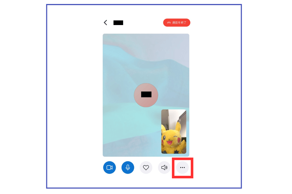 ①ビデオ通話を開始したら、画面右下の「…」マークをタップ