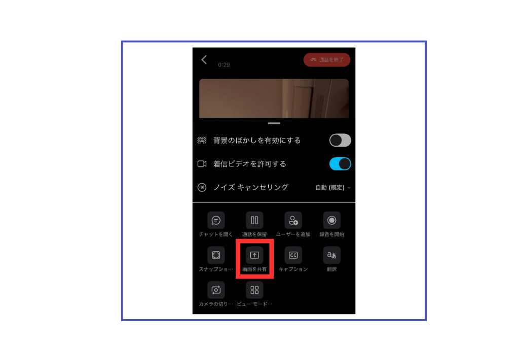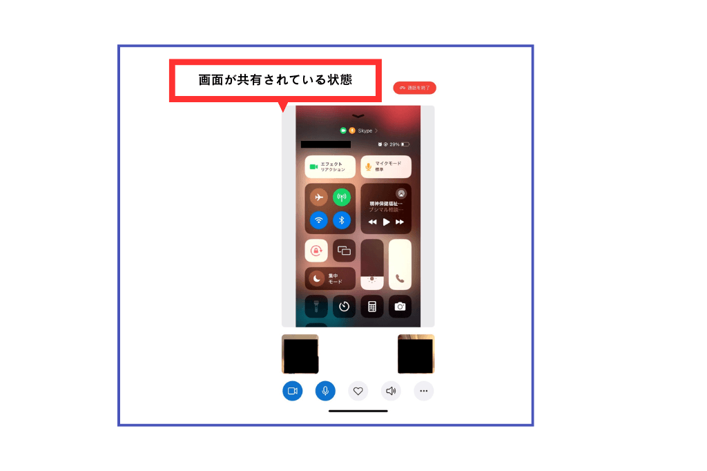 画面共有とは、ビデオ通話中に自分や相手の見ている画面を共有できる機能です。