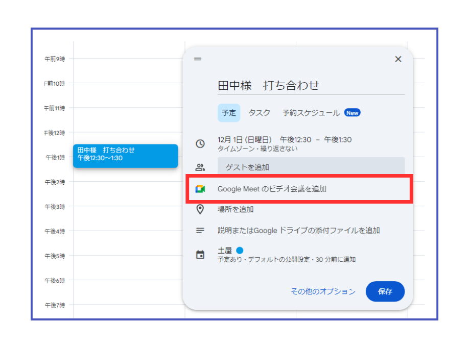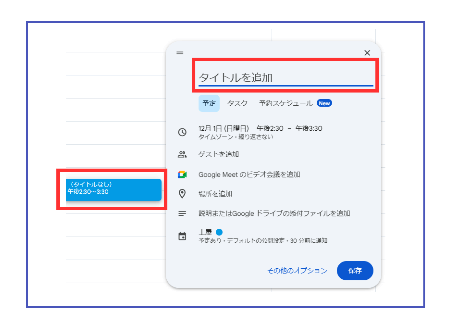 - 画像のような画面になるためのタイトルを追加する(例:〇〇様 打ち合わせ)