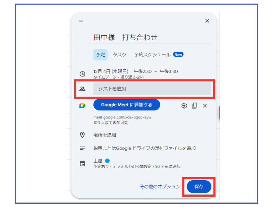 - Googleカレンダーのゲストに招待メールを送信
