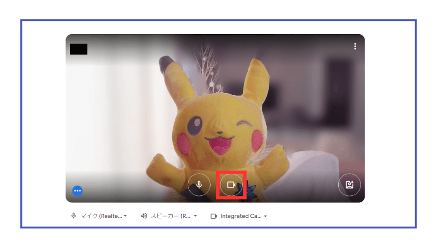 カメラは、カメラアイコンをクリックして映像が映っていれば動作しています。顔を映したくない場合は、カメラアイコンをクリックしてOFF(斜線が入っている状態)にしてください。