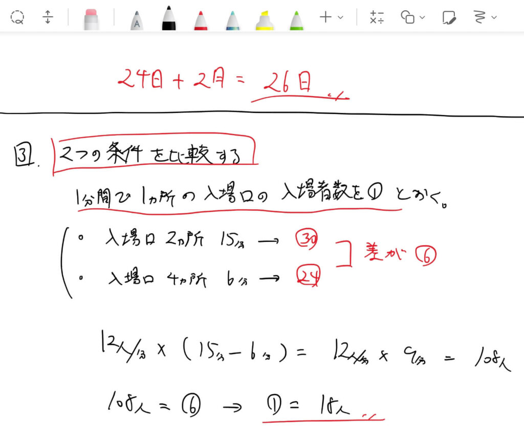 先ほども書いたように、オンライン家庭教師は対面の家庭教師よりもさらに説明が伝わりにくいです。その中でも生徒にうまく伝えるには、説明をより丁寧に詳しくする必要があります。一方で、生徒が書くノートにそのまま詳しい説明を全部書いて貰おうとすると、量が多すぎて後で見返した時に見づらいですし、そもそもノートを書くという作業だけで授業が終わってしまいます。なので、書いてもらうノートには詳しい説明は省きつつも、簡潔で分かりやすいような内容にすることを心掛けています。