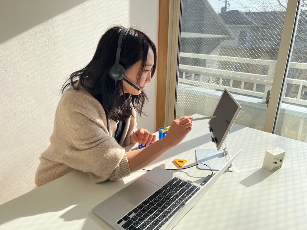 通勤時間がない分時間に余裕ができ、落ち着いて授業の準備ができますし、授業と授業の合間に夕ご飯の下ごしらえをしたり、子ども習い事に送り出したあとまたオンライン授業を行うなど育児と仕事をうまく両立できるようになりました。