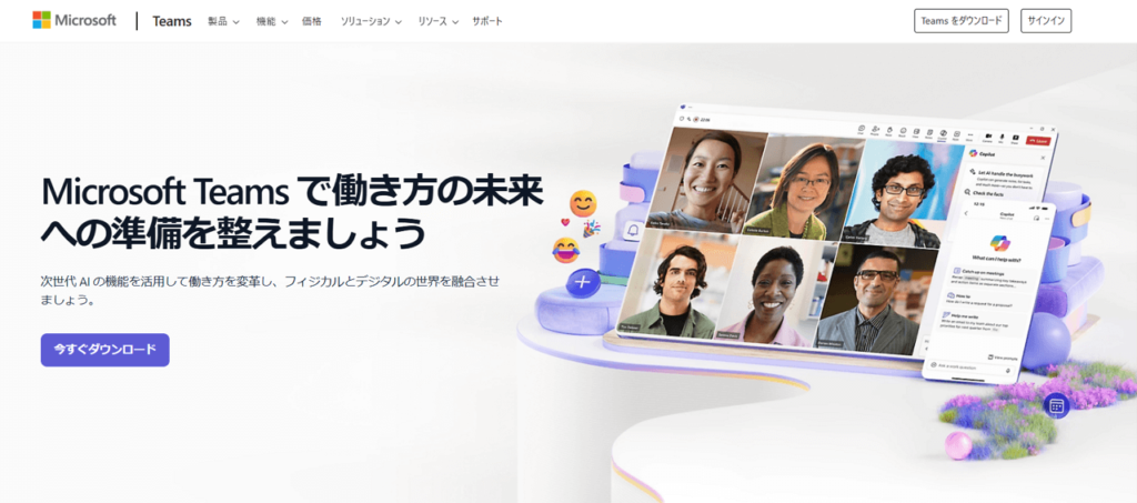 Microsoft Teamsは、Microsoft社が提供するビジネス向けコミュニケーションツールです。チャットやビデオ会議、通話、ファイル共有など、ビジネスコミュニケーションに必要な機能をオールインワンで利用できます。