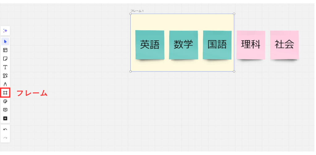 また、フレーム単位で移動させれば、中に配置したオブジェクトの位置関係を崩すことなく整理できます。さらに、フレームのサイズ調整や背景色・枠の変更により、視認性を高めることも可能です。ホワイトボード上の関連要素をまとめることで、より効率的な情報整理と共有が実現できます。
