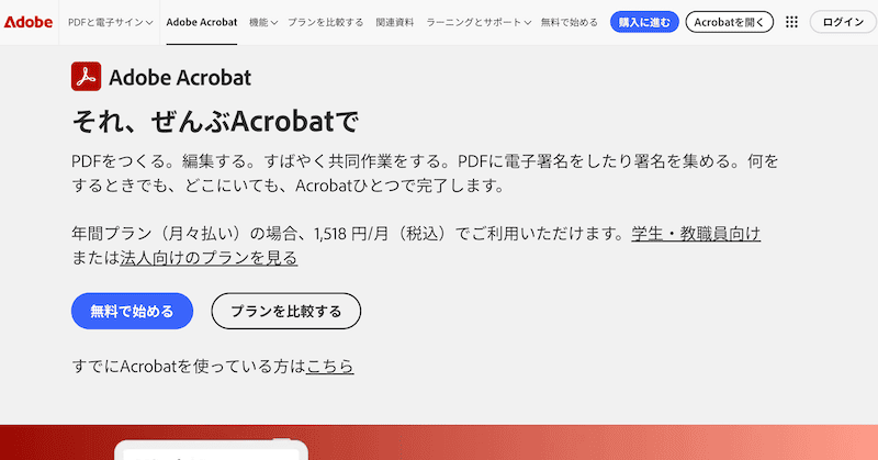 Adobe Acrobatシリーズは、PDFの本家本元ともいえるアプリです。無料版のAdobe Acrobat Readerでは、PDFに手書き入力やコメント入力ができます。有料版ではPDF自体のテキストも編集可能です。