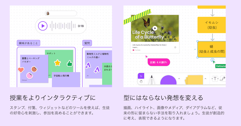 生徒同士が協力して成果物を作成する際も、FigJamが力を発揮します。子どもはオンラインツールの理解が早く、あっという間に使いこなして、思いがけないものを作りあげるかもしれません。