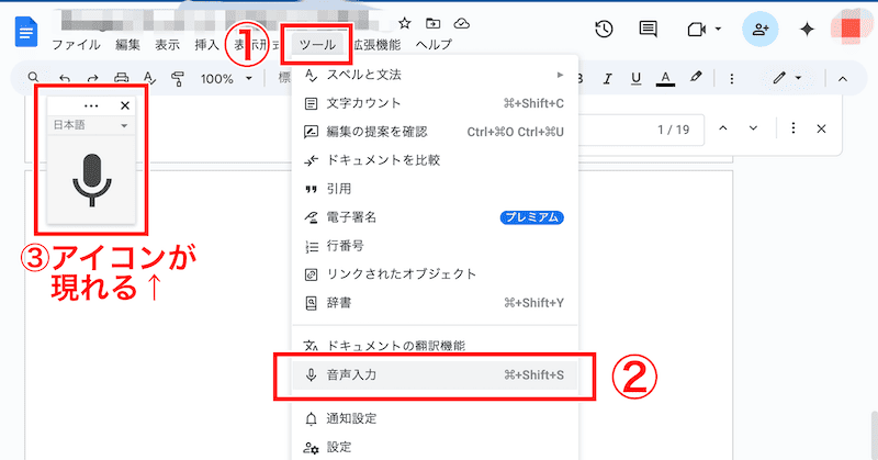 Googleドキュメントで音声入力する手順