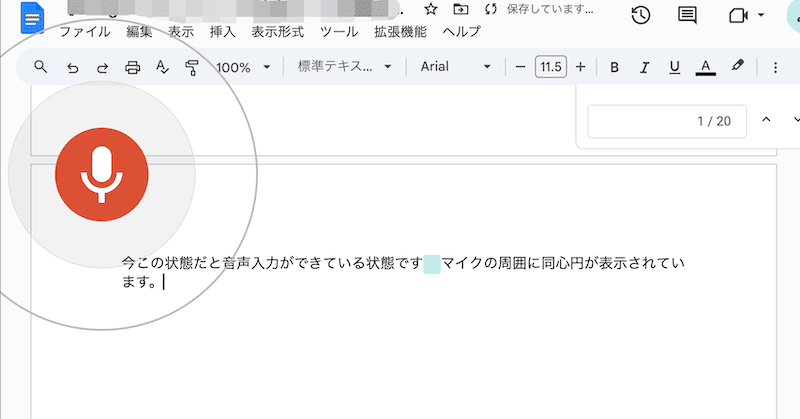 音声を認識すると、マイクのアイコン周囲に同心円が表示されます。