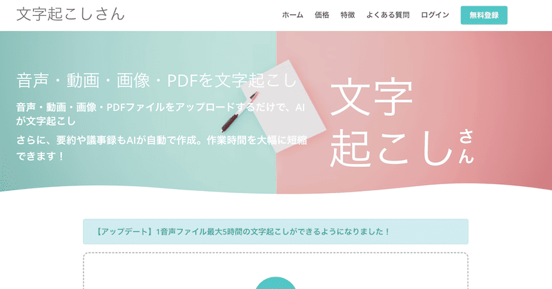 文字起こしさんは、ブラウザから手軽に利用できるAI文字起こしサービスです。音声だけでなく、動画・画像・PDFファイルも、アップロードするだけで文字起こしできます。なお、文字起こしにかかる時間は、録音の長さと同程度です。