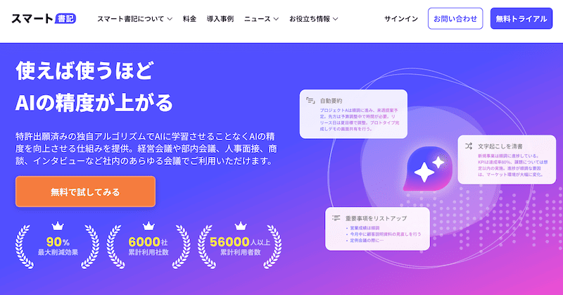 いずれもAIによる高精度な変換や話者分離、要約といった便利な機能はもちろん、音声データをAIに学習させない設定となっており、安心して利用できます。