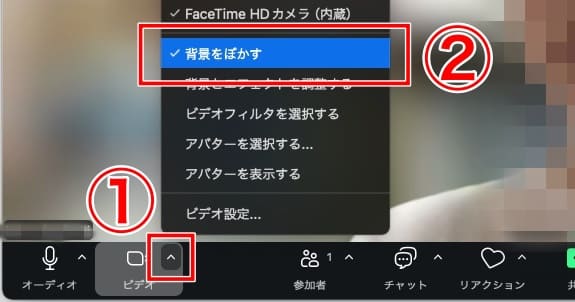 - バーチャル背景から「ぼかし」を選択