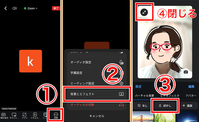 Zoomで背景をぼかす手順|スマホ編