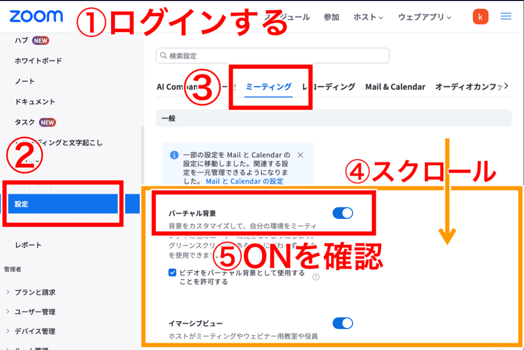 バーチャル背景の設定
