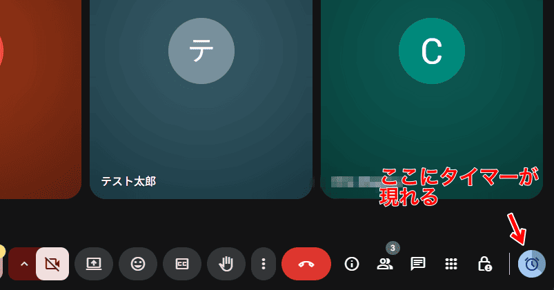 カウントダウンされているかどうかは、主催者の画面に表示されたタイマーで分かります。(ブラウザ版の画面です)