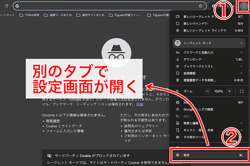 - ウィンドウ右上のメニューアイコン「︙」をクリックして開く