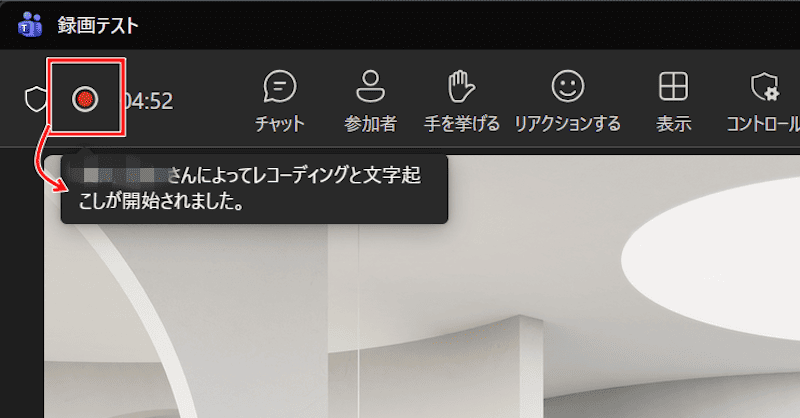 なお、Teamsで録画を開始すると、参加者全員の画面に「レコーディングを開始しました」と通知が表示されます。録画中は録画アイコンも表示されるため、参加者に知らせずにこっそり録画することはできません。